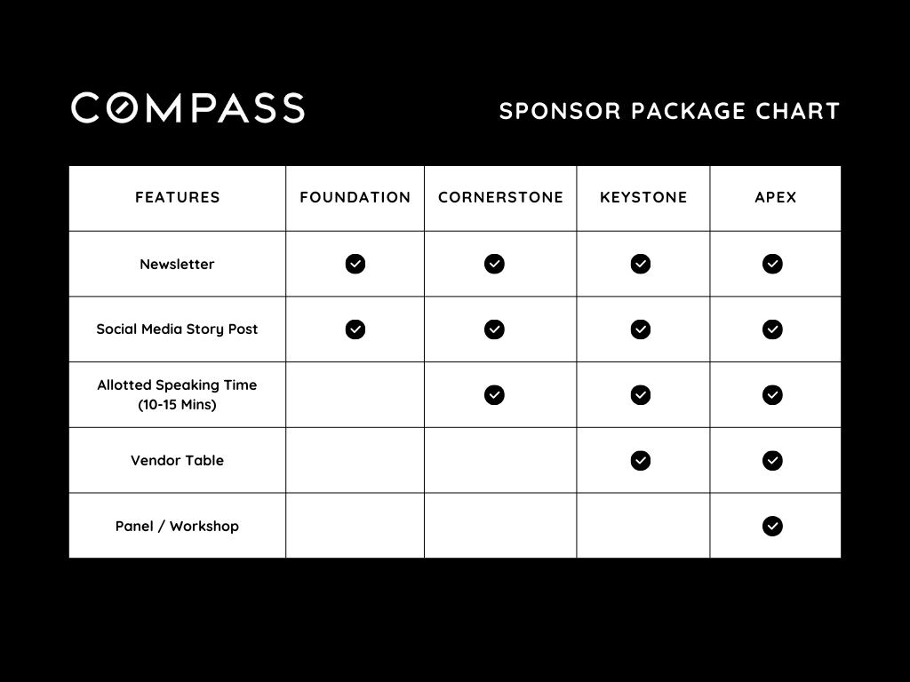 When you sponsor an event at Compass, we like to provide a variety of opportunities for maximum exposure to our agents. Our event packages offer several flexible ways to sponsor, designed to align with your company’s goals and fit within your budget.